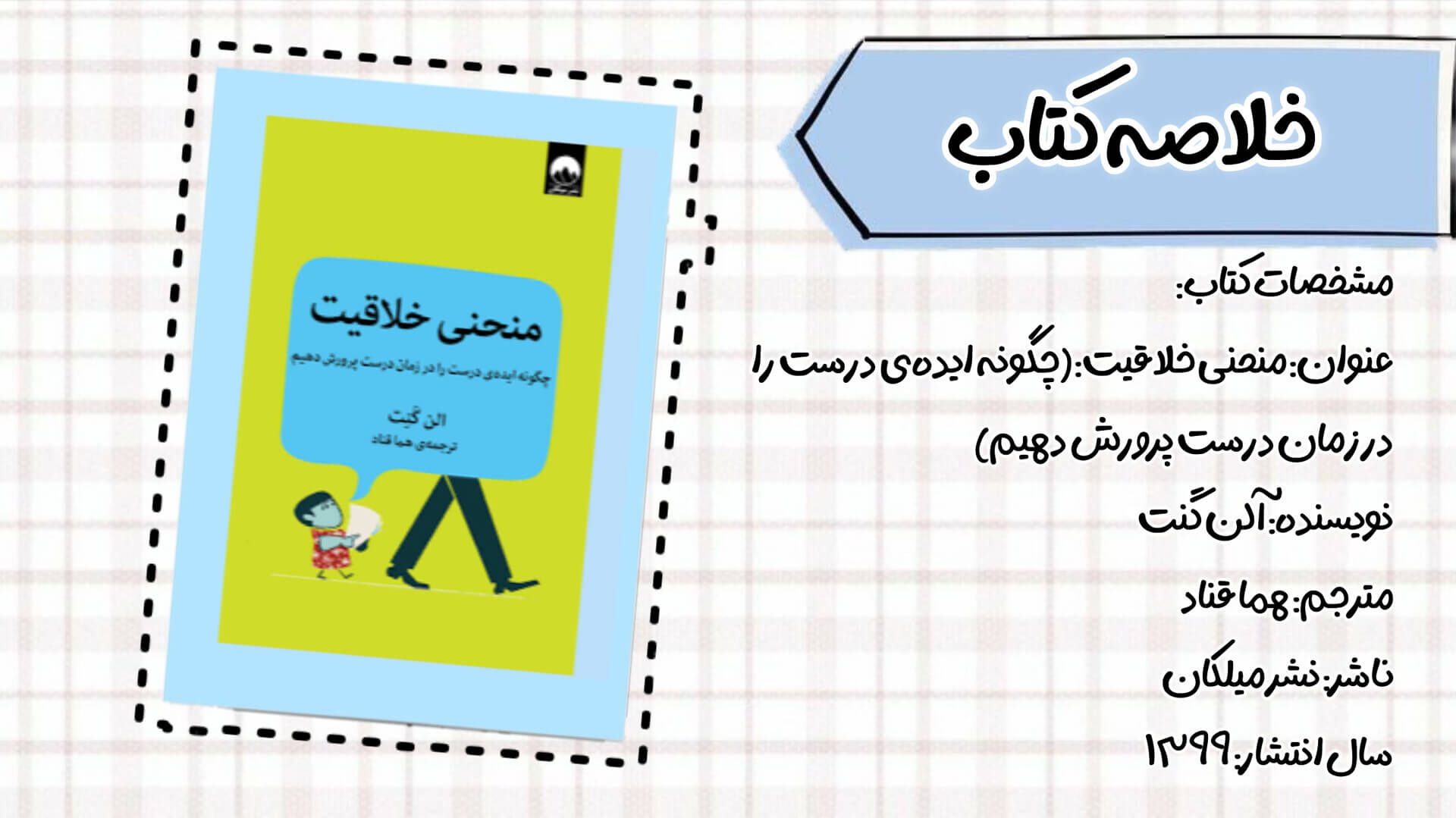 گنت، آلن. (۱۳۹۹). منحنی خلاقیت: چگونه ایدهی درست را در زمان درست پرورش دهیم. ترجمهی هما قناد. نشر میلکان.